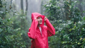 傘、レインコート(ポンチョタイプがおすすめ)、そしてレインブーツは必須です。傘だけではなく、動きやすく両手が使えるレインコートや、防水性が高いレインブーツがあると雨の中でも快適に動けるでしょう。